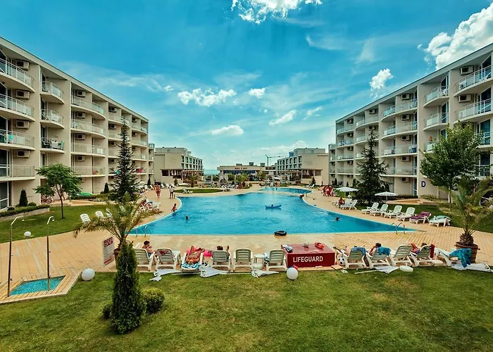 With Terrace In Spa Complex dairesi, deniz manzarasını sunan ve güneş terası, güneşlenme terası, mevsimlik açık havuz ile beraber 1 yatak odalı bir tesistir. Pomorie Su Parkı, daireden 6 km uzaklıkta bulunurken Museum of the aviation 1,2 km mesafededir.